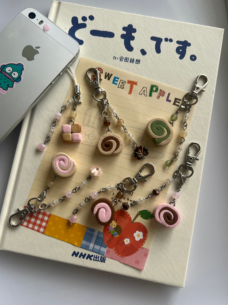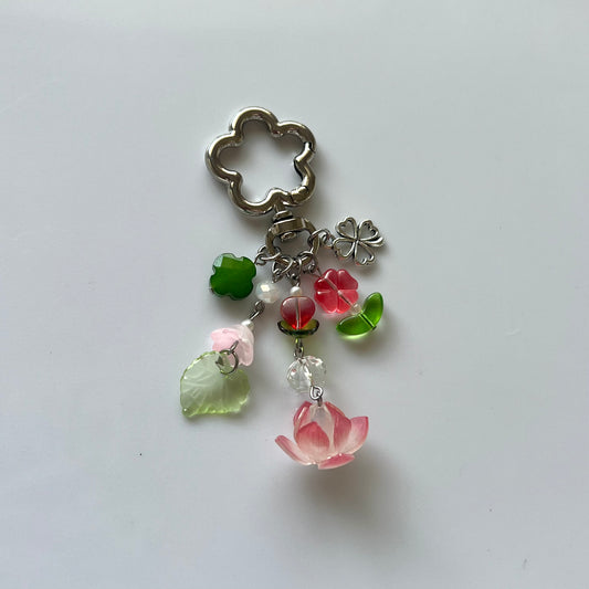 lucky pink and green heart bead heisei retro keychain .☘︎ ݁˖