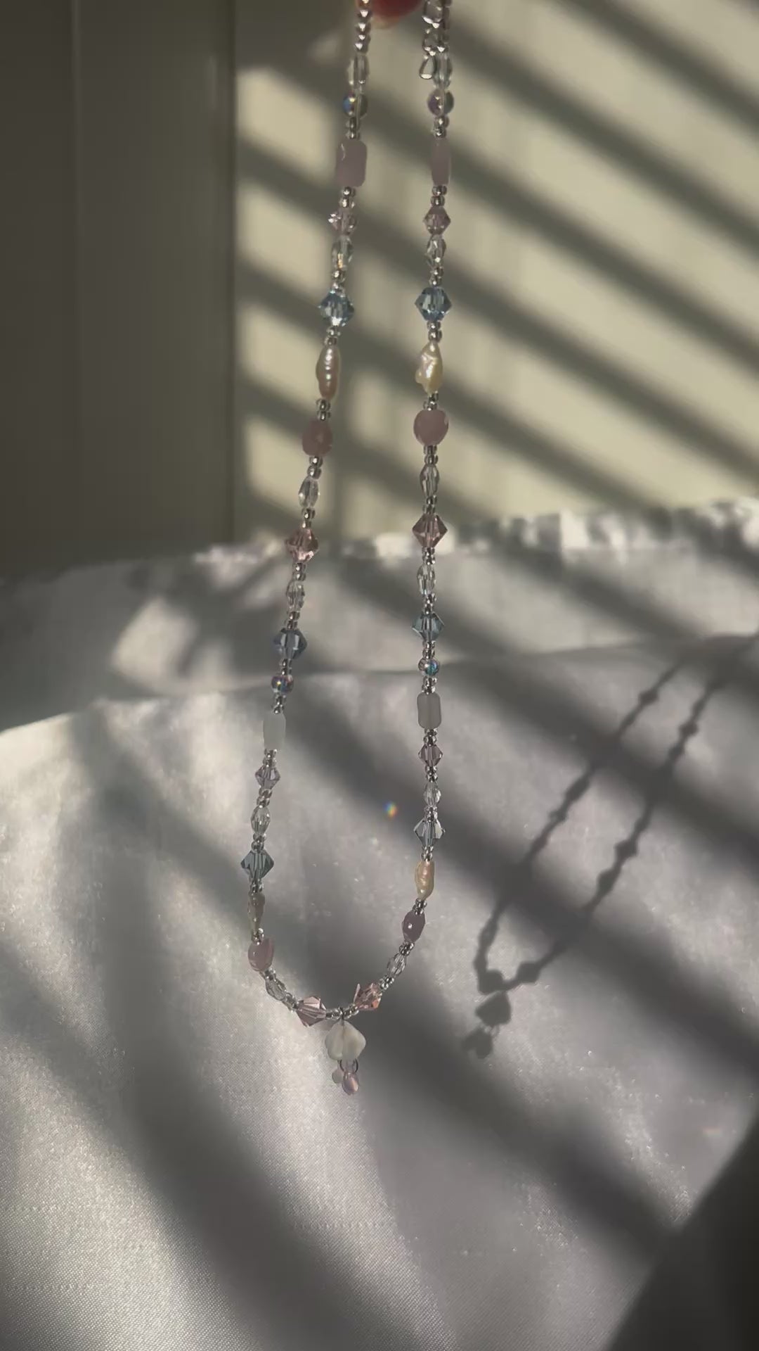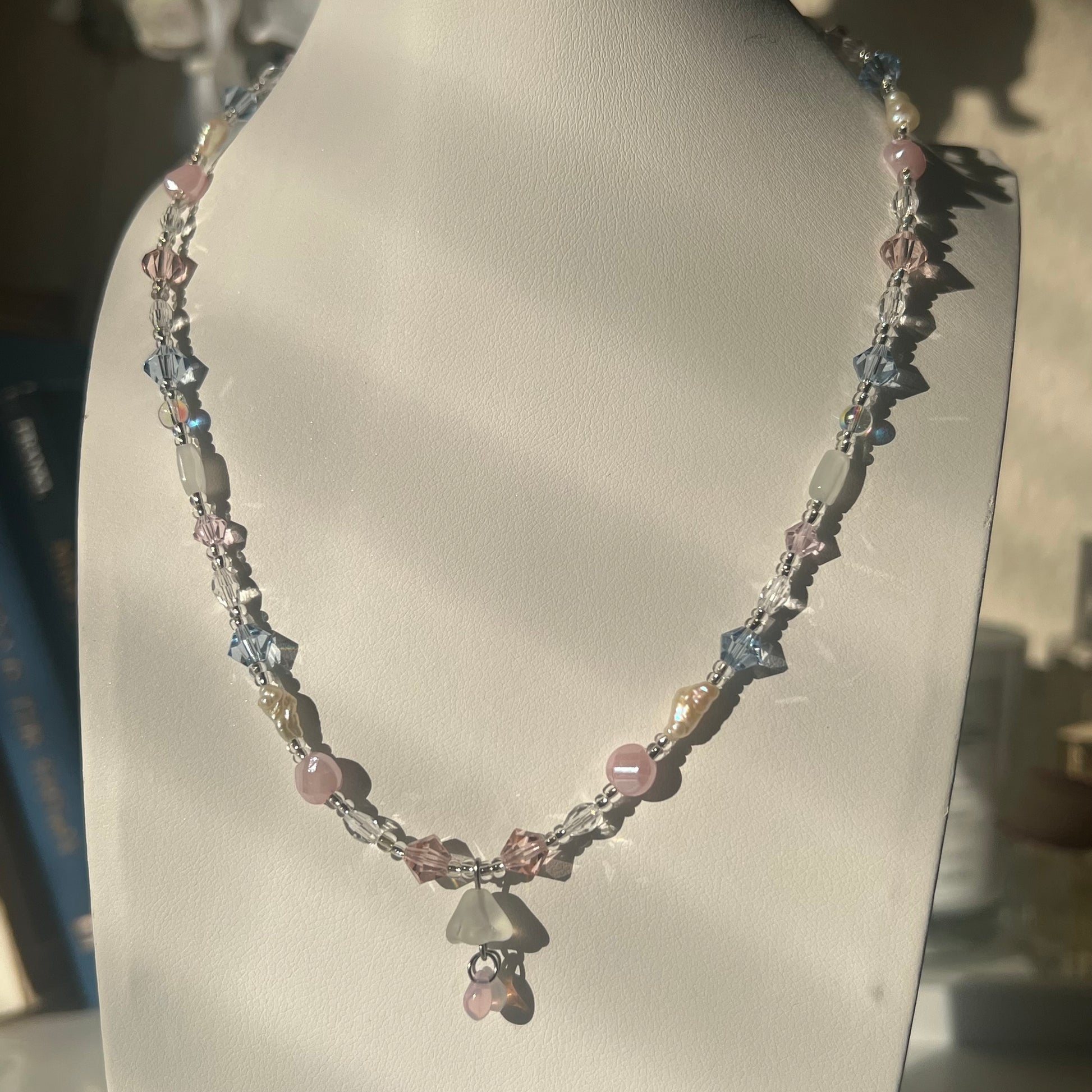This set specifically includes materials such as czech glass, acrylic, freshwater pearls, and stainless steel hardware :3