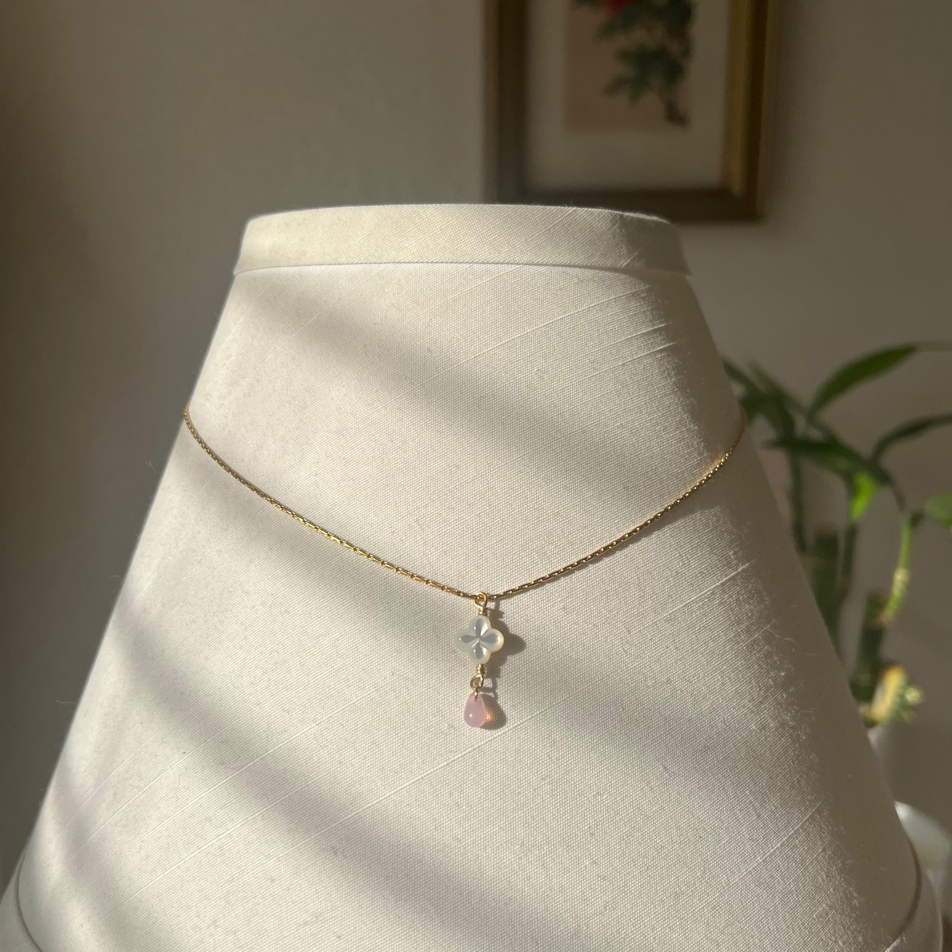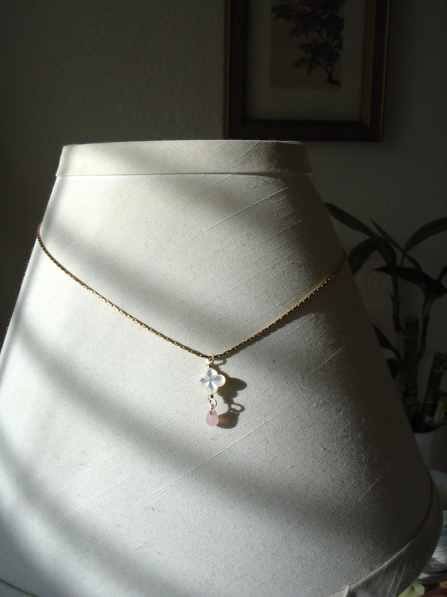 handmade with a shell cover pendant, czech glass, 18 plated stainless steel snake chain