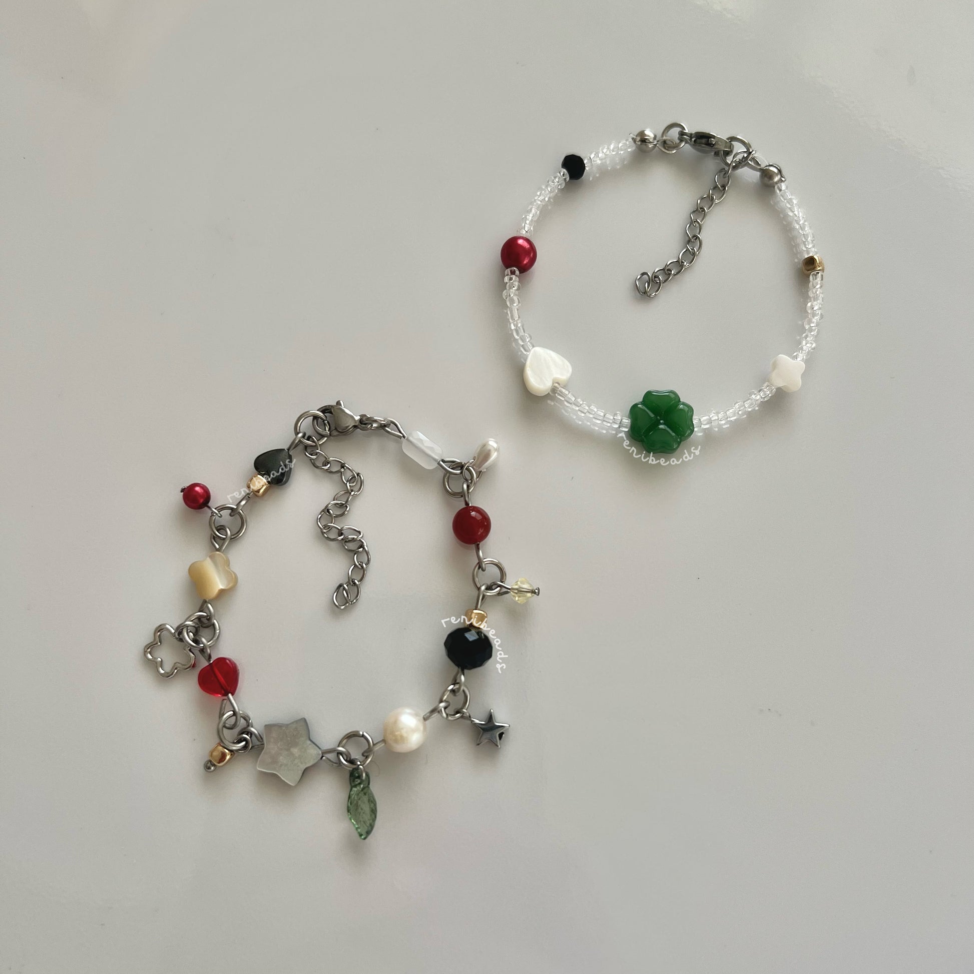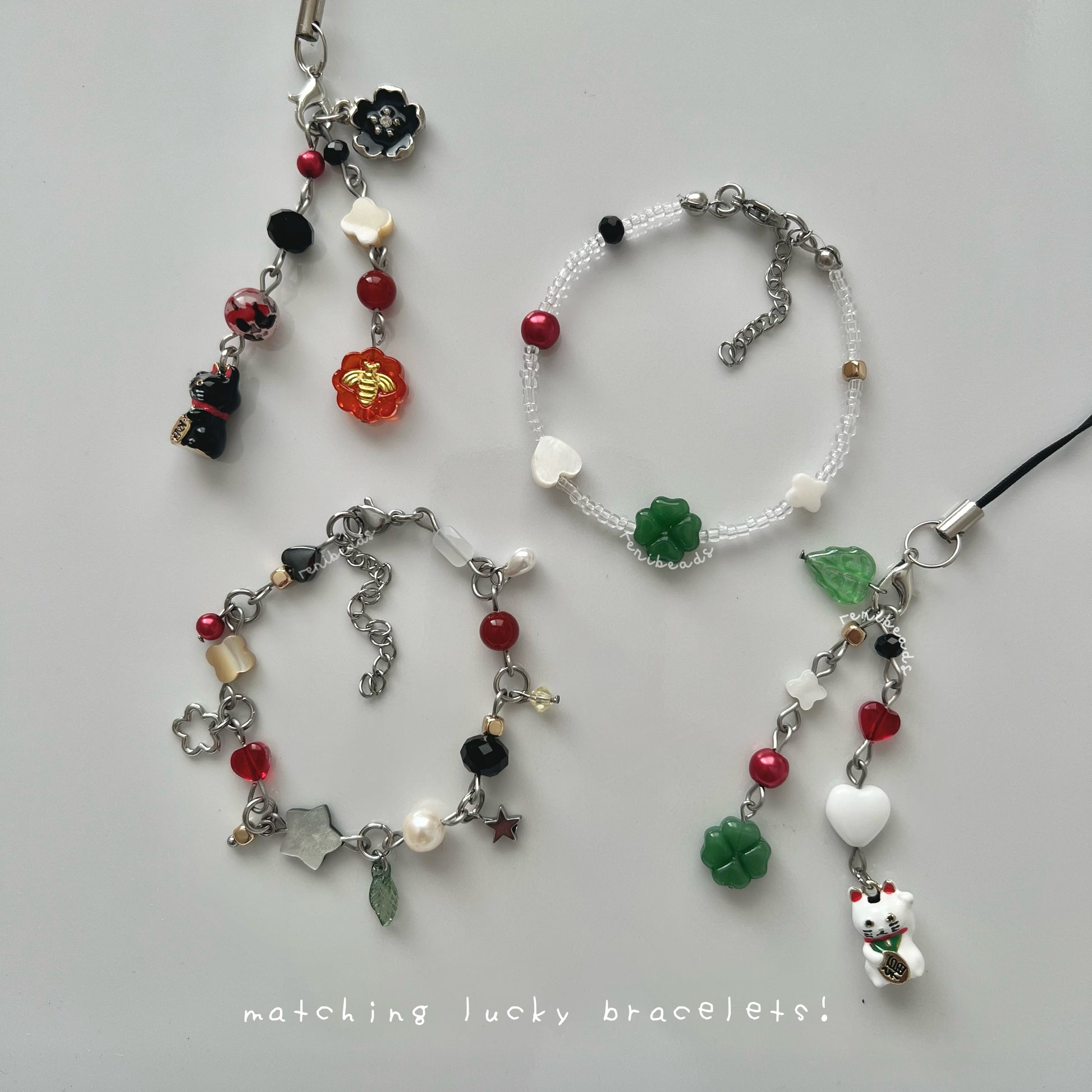 2 bracelets 1 clutter design to match the black cat and one stringed design to match the white waving cat :D [6.5-8β adjustable with chain]
