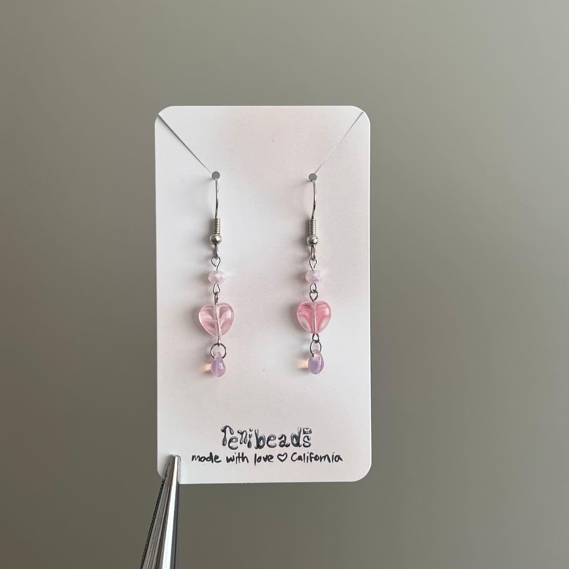 Pink + Silver Heart Shaped Drop Earrings ⋆.𐙚 𐔌՞. .՞𐦯. ⊹ ࣪