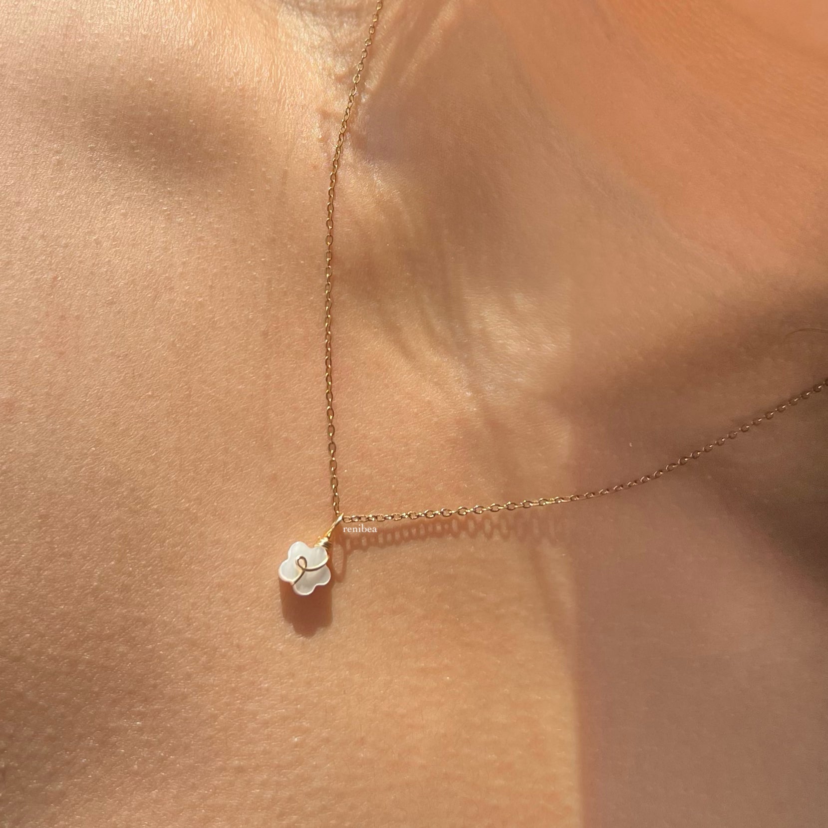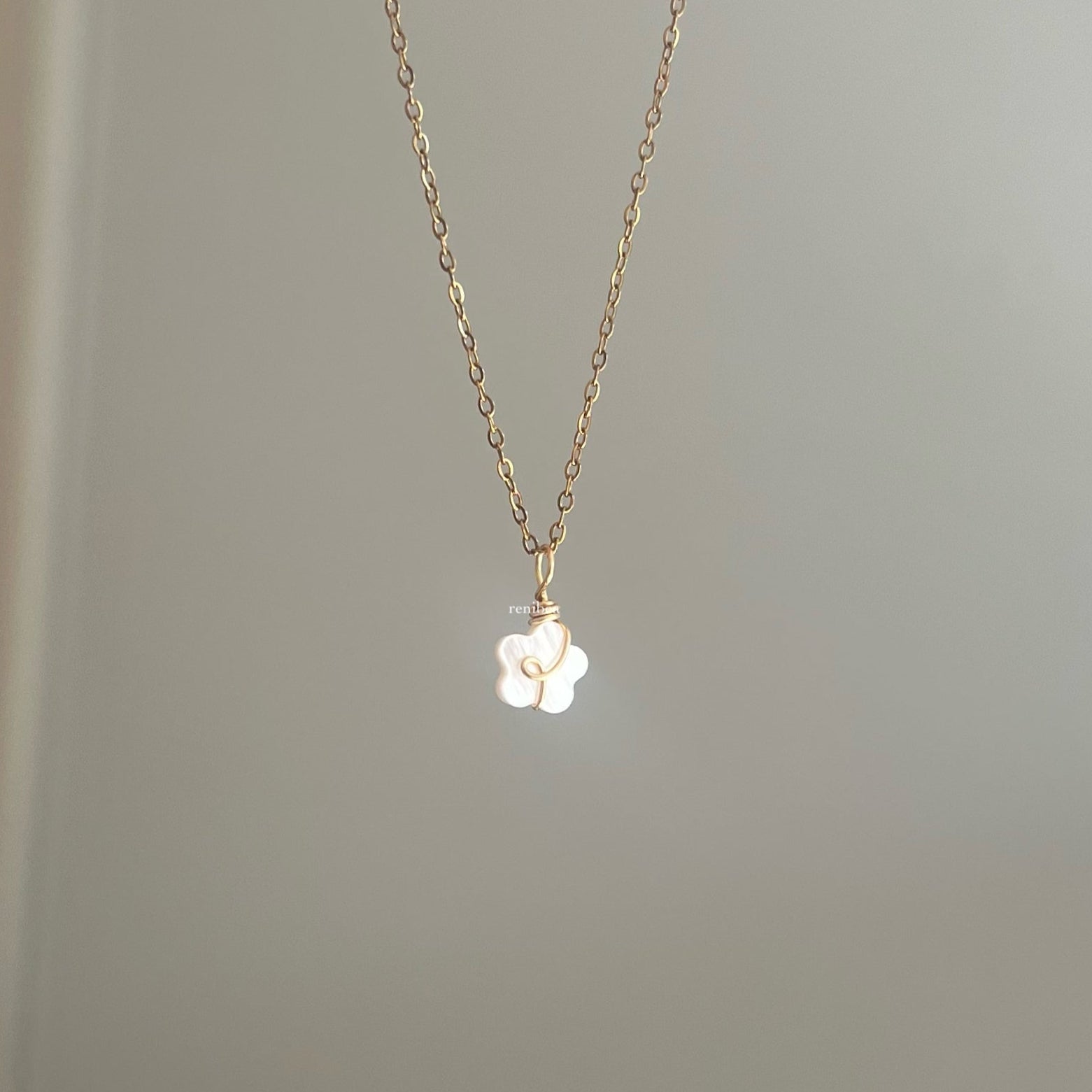 Forever lucky shell collection 2.0 - Gold looped MINI flower shell necklace .☘︎ ݁˖