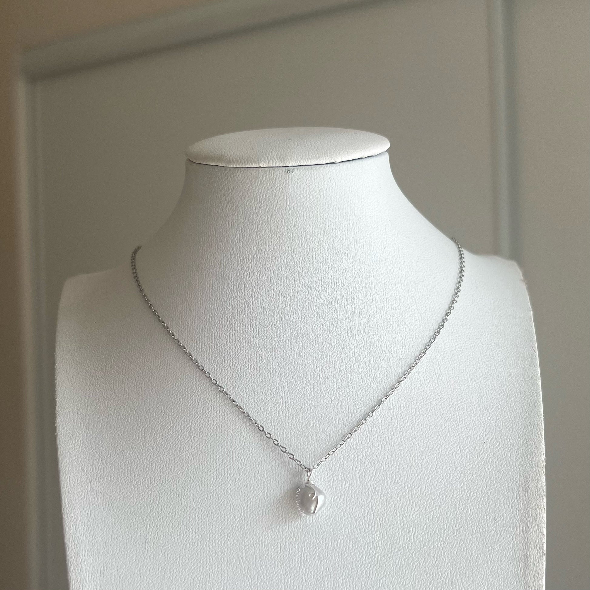 Pearl pendant is 1x1 cm and hand wire wrapped with silver plated wire attached to a stainless steel dainty chain (17 inches in length) necklace chain is water safe! Perfect spring/summer jewelry for those beach days 🐚💗