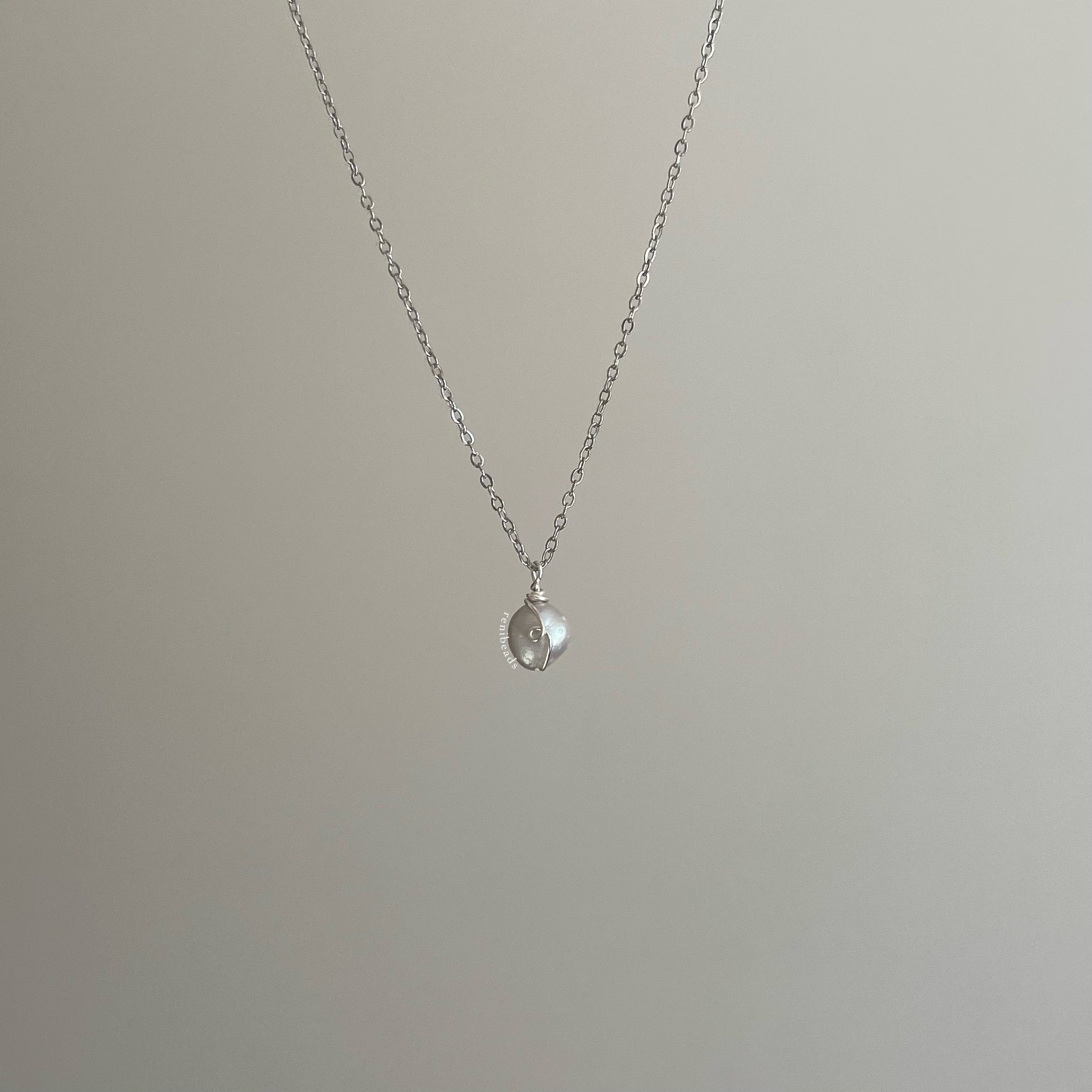 Forever lucky shell collection 2.0 - Silver looped Pearl necklace .☘︎ ݁˖
