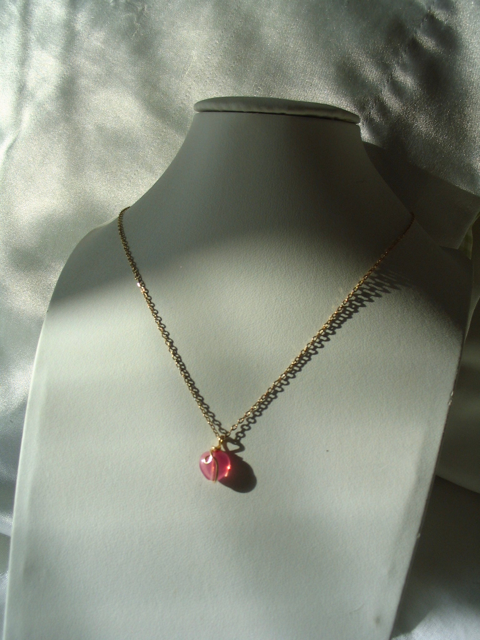 Strawberry Quarts Wrapped Heart Pendant Necklace ~