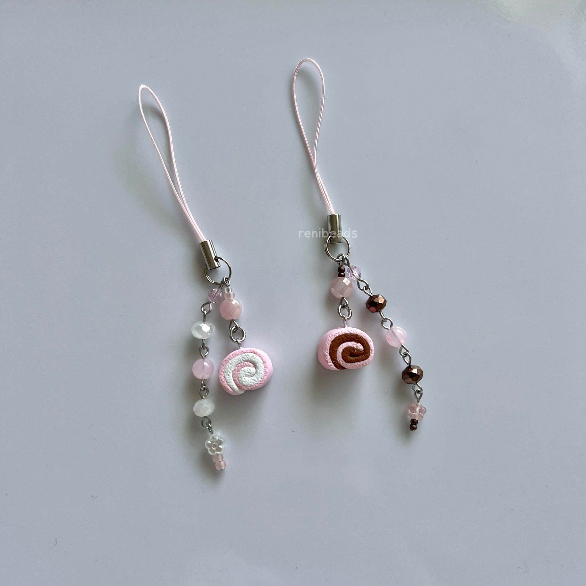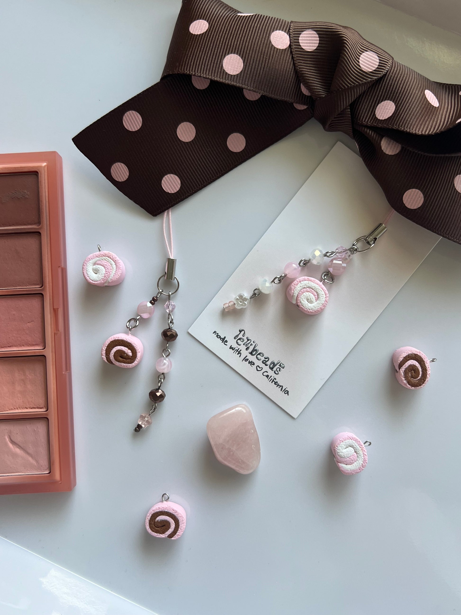handmade clay charms with stainless steel hardware and glass beads 🍰🍥